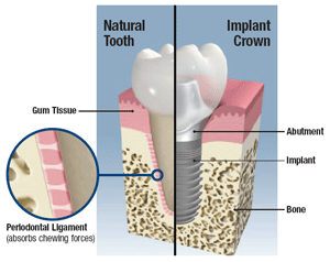 Lava™ Ultimate Restorative Shock absorbency The periodontal ligament is removed by the implant procedure, which removes shock absorbance or sensory function - so the crown may fracture or chip.